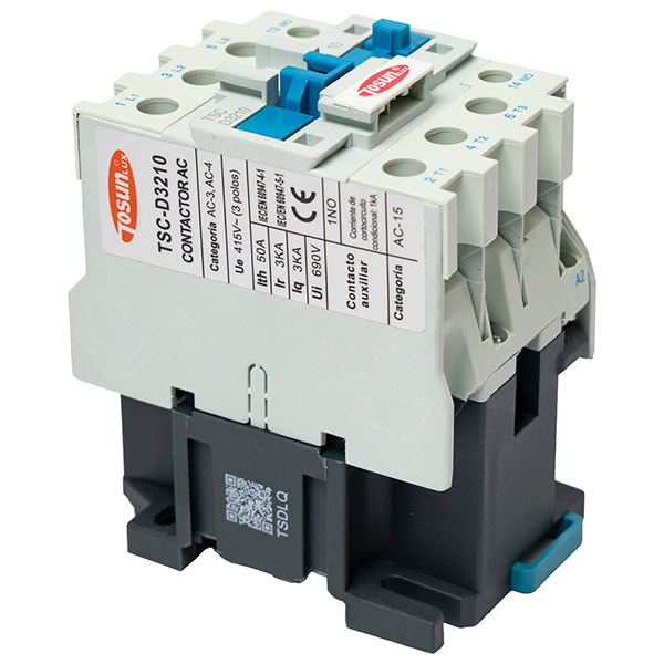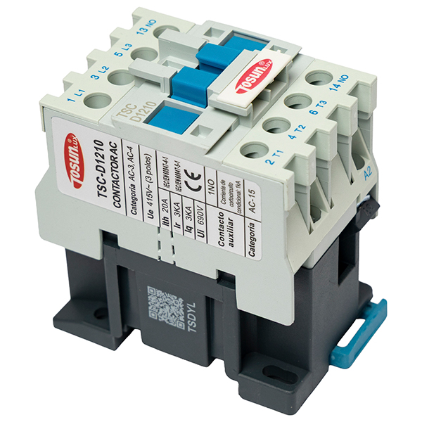 Contactor electromagnético para maniobra de cargas (motores, resistencias o alumbrado) desde circuitos de control. Corriente nominal 12 A. Configuración: 3 polos. Incluye contacto auxiliar NO.
