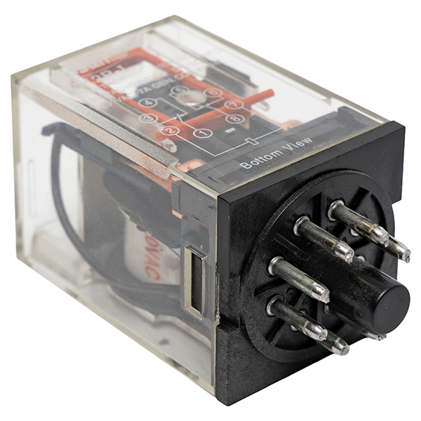 Relé Universal 14 Pines 24 VDC. Relé para conmutación de contactos en circuitos de control, aislando señales y permitiendo maniobra de cargas de baja potencia. Especificación: 24 V. Aplicación: tableros de automatización, PLC e interlocks.